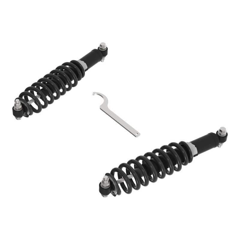 - Higher spring rate and higher preload force versus standard springs prevent the vehicle from sagging with a heavy payload, such as a blade and cab